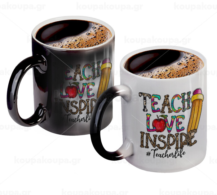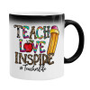 Teach, Love, Inspire, Color changing magic Mug, ceramic, 330ml when adding hot liquid inside, the black colour desappears (1 pcs)
