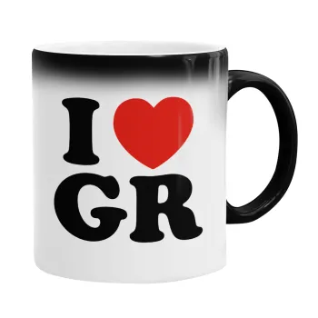 I Love GR, Color changing magic Mug, ceramic, 330ml when adding hot liquid inside, the black colour desappears (1 pcs)