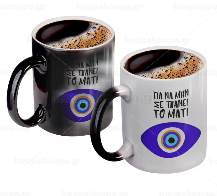 Για να μην σε πιάνει το μάτι, Color changing magic Mug, ceramic, 330ml when adding hot liquid inside, the black colour desappears (1 pcs)