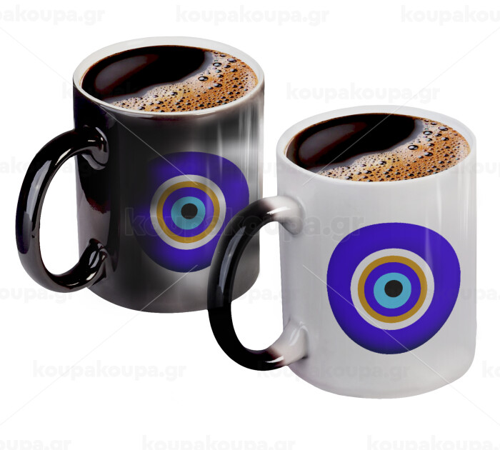 Το μάτι, Color changing magic Mug, ceramic, 330ml when adding hot liquid inside, the black colour desappears (1 pcs)