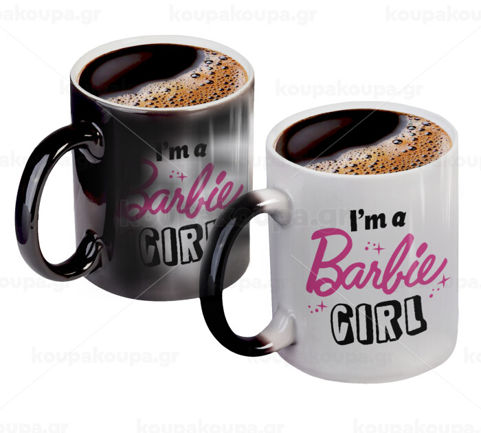 I'm Barbie girl, Color changing magic Mug, ceramic, 330ml when adding hot liquid inside, the black colour desappears (1 pcs)