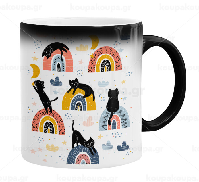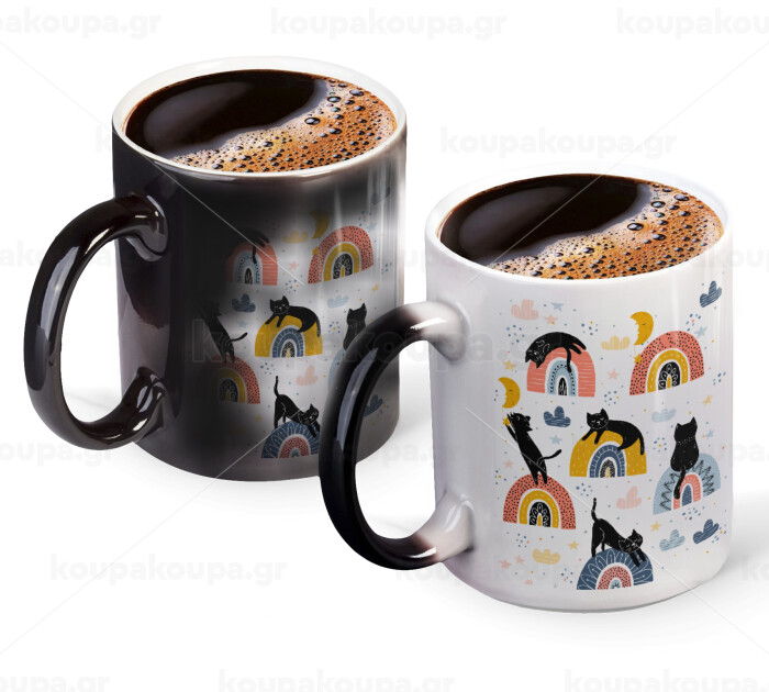Γατούλες, Color changing magic Mug, ceramic, 330ml when adding hot liquid inside, the black colour desappears (1 pcs)