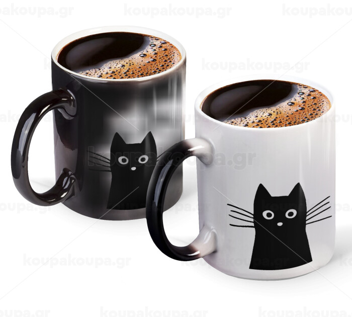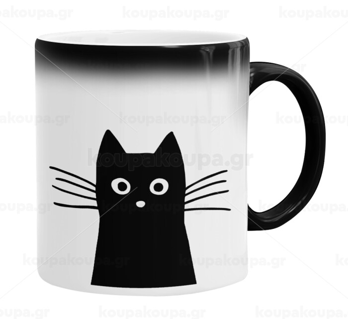 Black Cat, Color changing magic Mug, ceramic, 330ml when adding hot liquid inside, the black colour desappears (1 pcs)