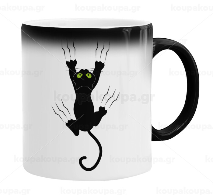 cat grabbing, Color changing magic Mug, ceramic, 330ml when adding hot liquid inside, the black colour desappears (1 pcs)