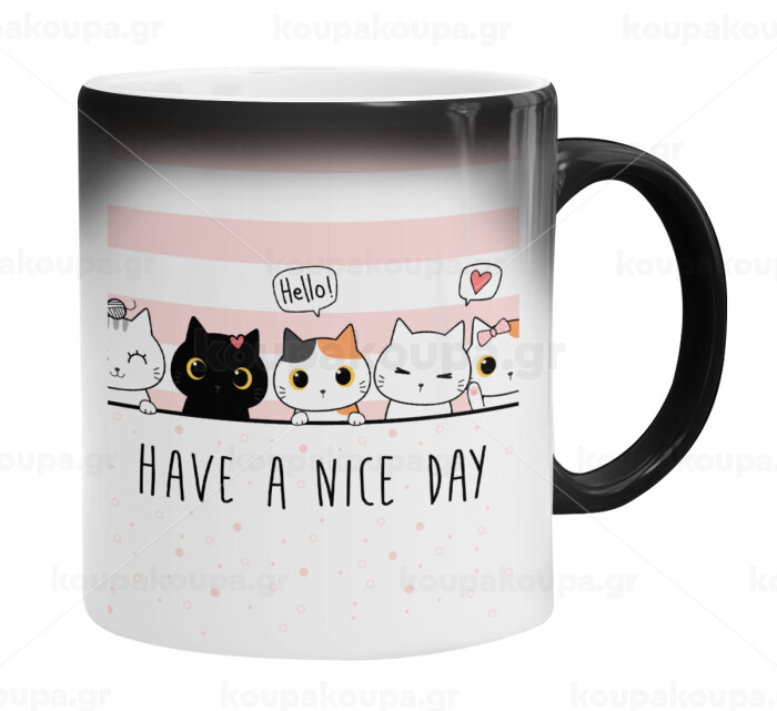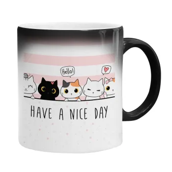 Have a nice day cats, Color changing magic Mug, ceramic, 330ml when adding hot liquid inside, the black colour desappears (1 pcs)