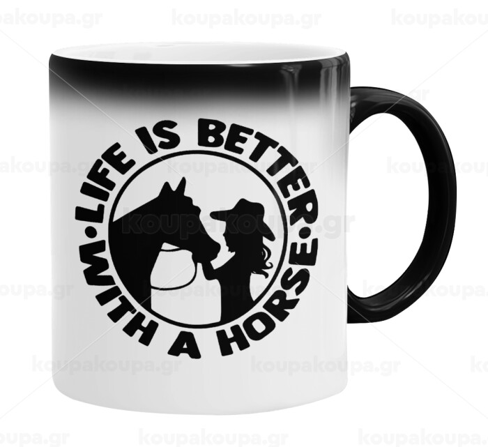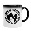 Life is Better with a Horse, Color changing magic Mug, ceramic, 330ml when adding hot liquid inside, the black colour desappears (1 pcs)