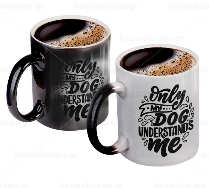 Only my DOG, understands me, Color changing magic Mug, ceramic, 330ml when adding hot liquid inside, the black colour desappears (1 pcs)