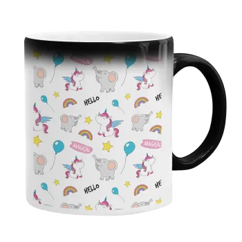 Happy Clouds Doodle, Color changing magic Mug, ceramic, 330ml when adding hot liquid inside, the black colour desappears (1 pcs)
