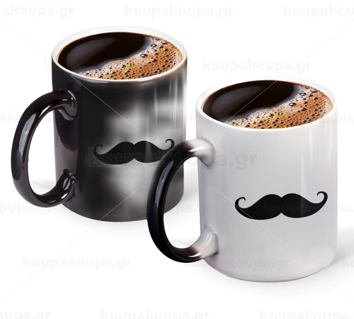 moustache, Color changing magic Mug, ceramic, 330ml when adding hot liquid inside, the black colour desappears (1 pcs)