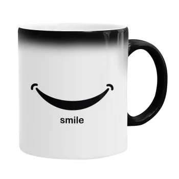 Smile!!!, Color changing magic Mug, ceramic, 330ml when adding hot liquid inside, the black colour desappears (1 pcs)
