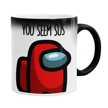 Among US, you seem sus, Color changing magic Mug, ceramic, 330ml when adding hot liquid inside, the black colour desappears (1 pcs)