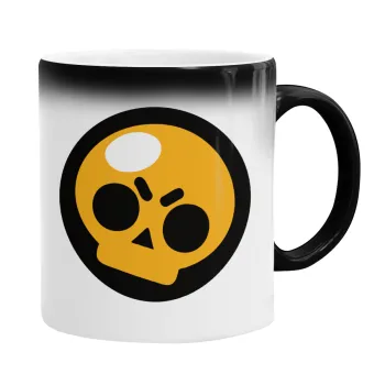 Brawl Stars Skull, Color changing magic Mug, ceramic, 330ml when adding hot liquid inside, the black colour desappears (1 pcs)