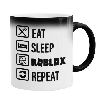 Eat, Sleep, Roblox, Repeat, Color changing magic Mug, ceramic, 330ml when adding hot liquid inside, the black colour desappears (1 pcs)