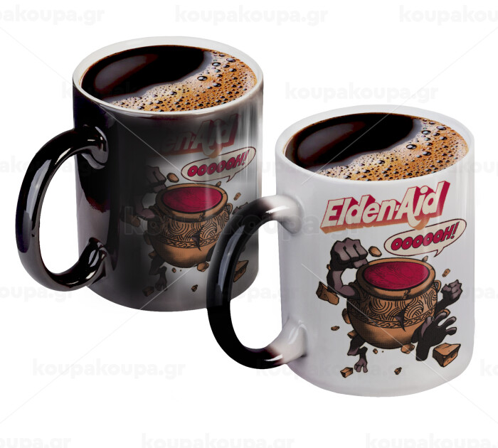 Elden-Aid, Elden Ring inspired , Color changing magic Mug, ceramic, 330ml when adding hot liquid inside, the black colour desappears (1 pcs)
