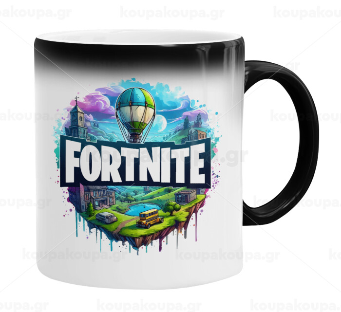 Fortnite land, Color changing magic Mug, ceramic, 330ml when adding hot liquid inside, the black colour desappears (1 pcs)