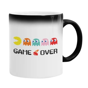 GAME OVER pac-man, Color changing magic Mug, ceramic, 330ml when adding hot liquid inside, the black colour desappears (1 pcs)