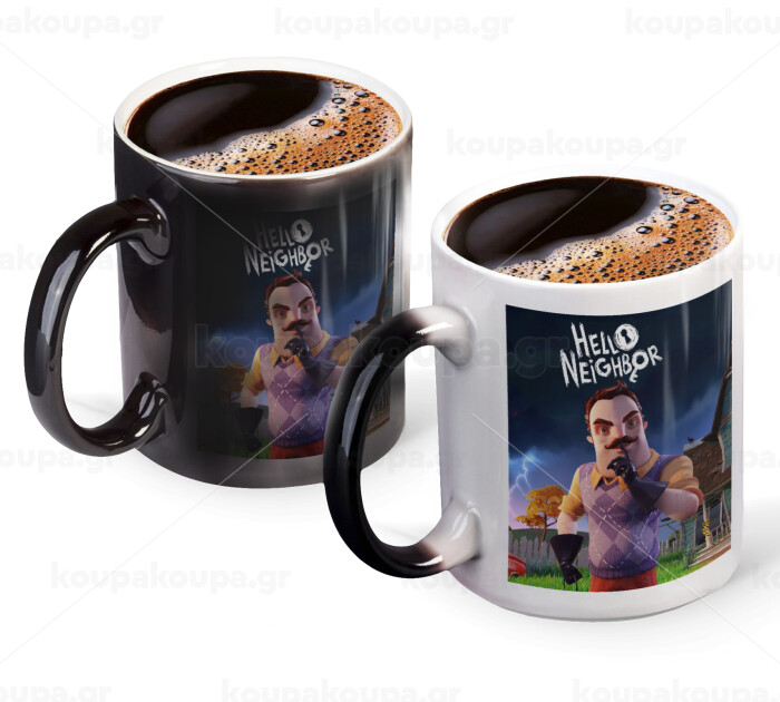 Hello Neighbor, Color changing magic Mug, ceramic, 330ml when adding hot liquid inside, the black colour desappears (1 pcs)