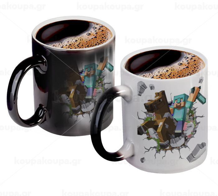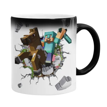 Minecraft brick, Color changing magic Mug, ceramic, 330ml when adding hot liquid inside, the black colour desappears (1 pcs)