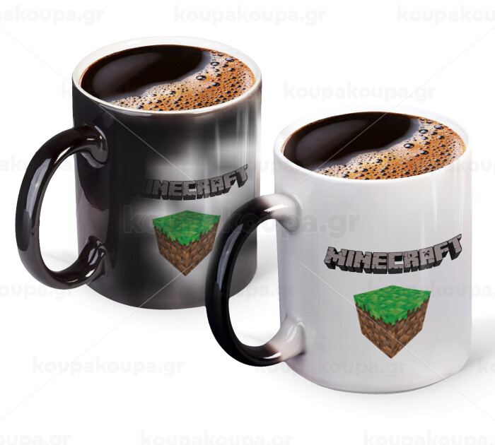 Minecraft dirt, Color changing magic Mug, ceramic, 330ml when adding hot liquid inside, the black colour desappears (1 pcs)