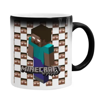 Minecraft herobrine, Color changing magic Mug, ceramic, 330ml when adding hot liquid inside, the black colour desappears (1 pcs)