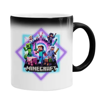 Minecraft Nether Portal, Color changing magic Mug, ceramic, 330ml when adding hot liquid inside, the black colour desappears (1 pcs)