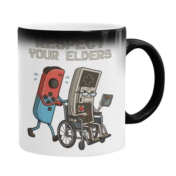 Respect your Elders, Color changing magic Mug, ceramic, 330ml when adding hot liquid inside, the black colour desappears (1 pcs)