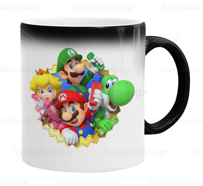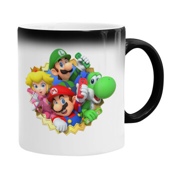 Super mario and Friends, Color changing magic Mug, ceramic, 330ml when adding hot liquid inside, the black colour desappears (1 pcs)