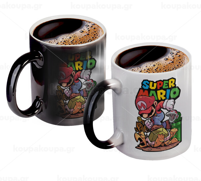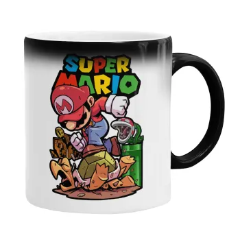 Super mario Jump, Color changing magic Mug, ceramic, 330ml when adding hot liquid inside, the black colour desappears (1 pcs)