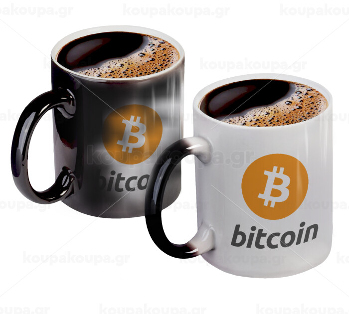 Bitcoin, Color changing magic Mug, ceramic, 330ml when adding hot liquid inside, the black colour desappears (1 pcs)