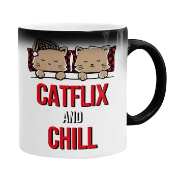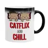 Catflix and Chill, Color changing magic Mug, ceramic, 330ml when adding hot liquid inside, the black colour desappears (1 pcs)