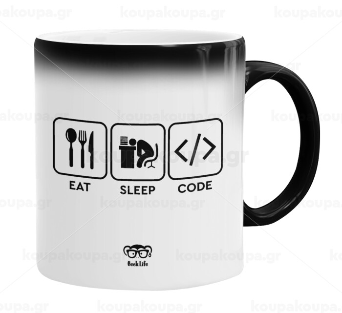 Eat Sleep Code, Color changing magic Mug, ceramic, 330ml when adding hot liquid inside, the black colour desappears (1 pcs)