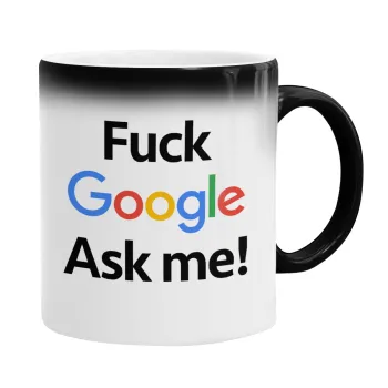 Fuck Google, Ask me!, Color changing magic Mug, ceramic, 330ml when adding hot liquid inside, the black colour desappears (1 pcs)