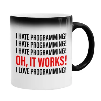I hate programming!!!, Color changing magic Mug, ceramic, 330ml when adding hot liquid inside, the black colour desappears (1 pcs)