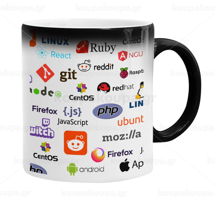 Tech logos, Color changing magic Mug, ceramic, 330ml when adding hot liquid inside, the black colour desappears (1 pcs)