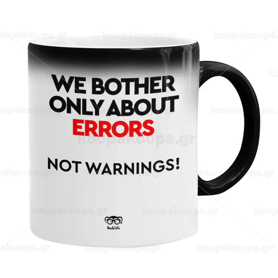 We bother only about errors, not warnings, Color changing magic Mug, ceramic, 330ml when adding hot liquid inside, the black colour desappears (1 pcs)
