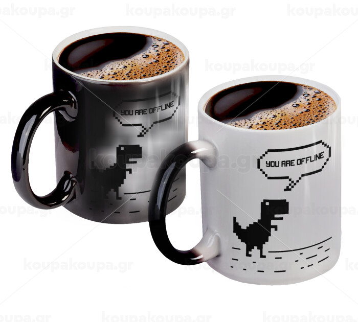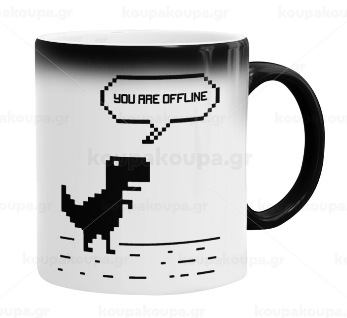 You are offline dinosaur, Color changing magic Mug, ceramic, 330ml when adding hot liquid inside, the black colour desappears (1 pcs)