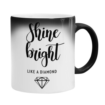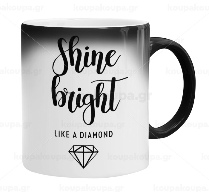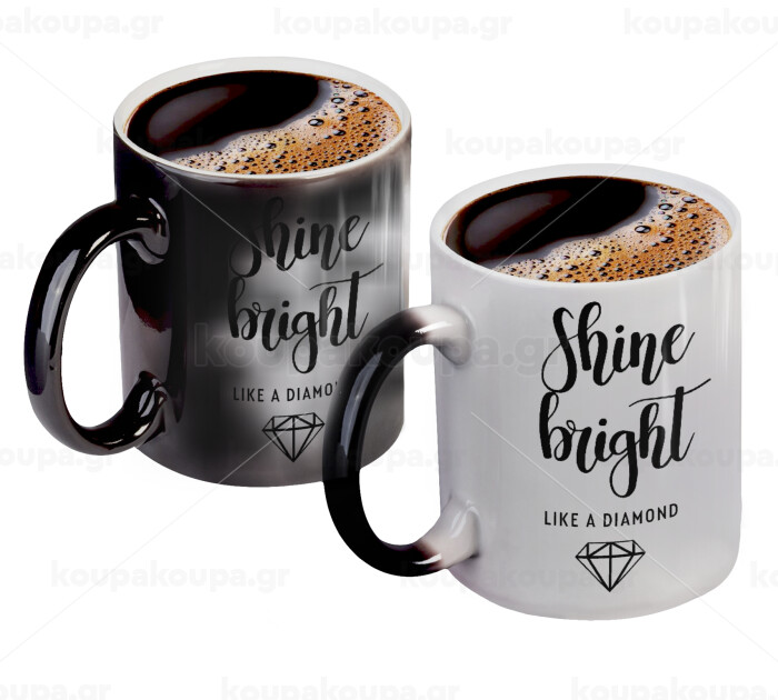 Bright, Shine like a Diamond, Color changing magic Mug, ceramic, 330ml when adding hot liquid inside, the black colour desappears (1 pcs)