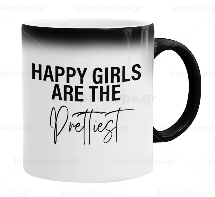 Happy girls are the prettiest, Color changing magic Mug, ceramic, 330ml when adding hot liquid inside, the black colour desappears (1 pcs)