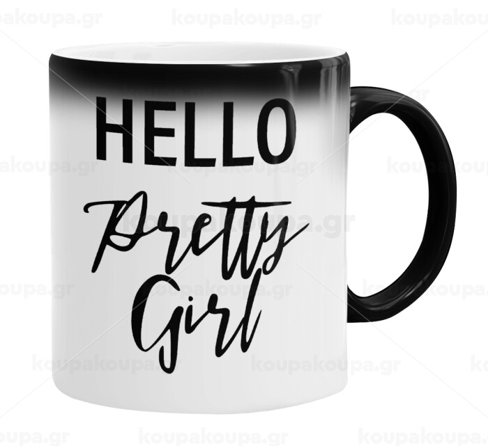 Hello pretty girl, Color changing magic Mug, ceramic, 330ml when adding hot liquid inside, the black colour desappears (1 pcs)