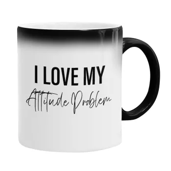 I love my attitude problem, Color changing magic Mug, ceramic, 330ml when adding hot liquid inside, the black colour desappears (1 pcs)