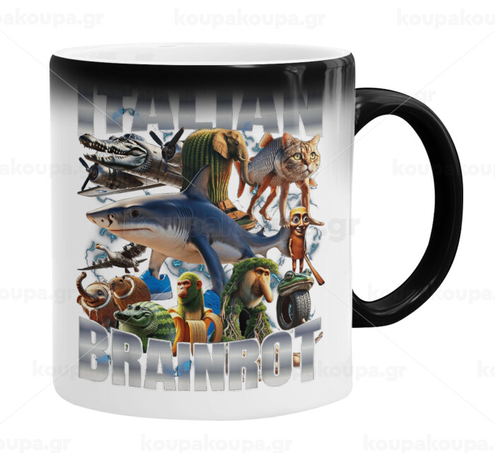Italian Brainrot, Color changing magic Mug, ceramic, 330ml when adding hot liquid inside, the black colour desappears (1 pcs)