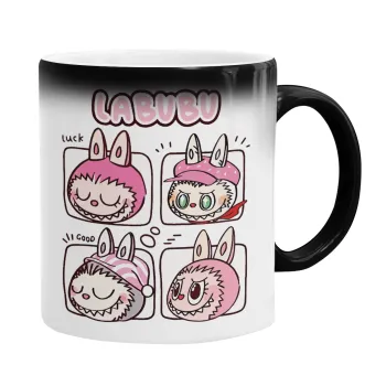 Labubu pink, Color changing magic Mug, ceramic, 330ml when adding hot liquid inside, the black colour desappears (1 pcs)
