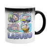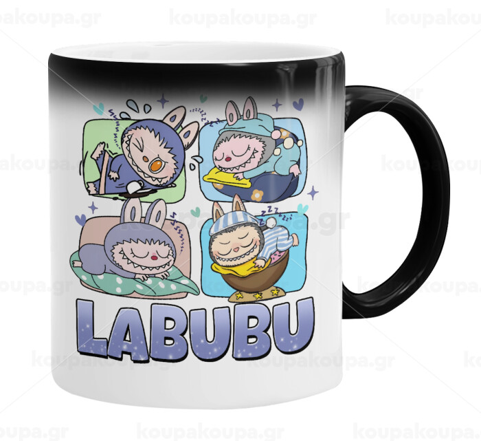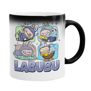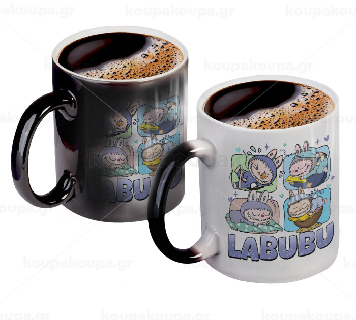 Labubu, Color changing magic Mug, ceramic, 330ml when adding hot liquid inside, the black colour desappears (1 pcs)