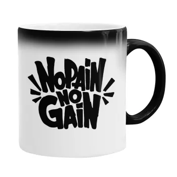 No pain no gain, Color changing magic Mug, ceramic, 330ml when adding hot liquid inside, the black colour desappears (1 pcs)