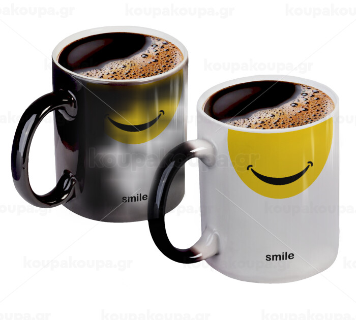 Smile Mug, Color changing magic Mug, ceramic, 330ml when adding hot liquid inside, the black colour desappears (1 pcs)