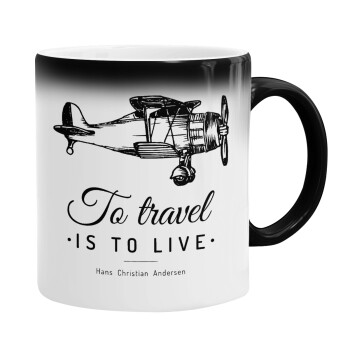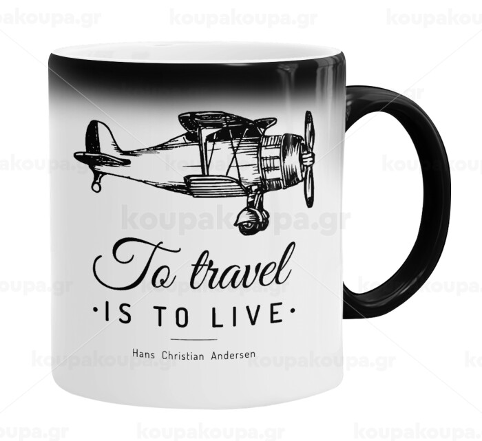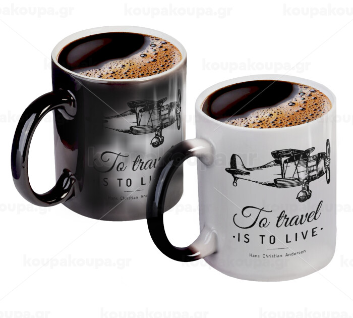 To travel is to live, Color changing magic Mug, ceramic, 330ml when adding hot liquid inside, the black colour desappears (1 pcs)