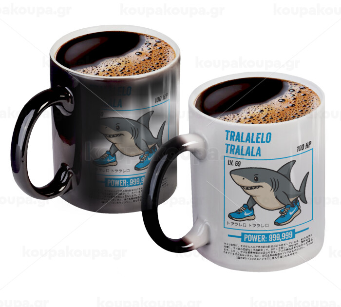 Tralalero Tralala, Color changing magic Mug, ceramic, 330ml when adding hot liquid inside, the black colour desappears (1 pcs)