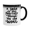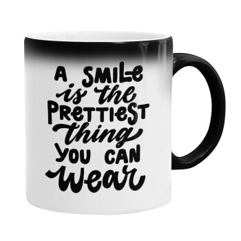 A smile is the prettiest thing you can wear, Color changing magic Mug, ceramic, 330ml when adding hot liquid inside, the black colour desappears (1 pcs)