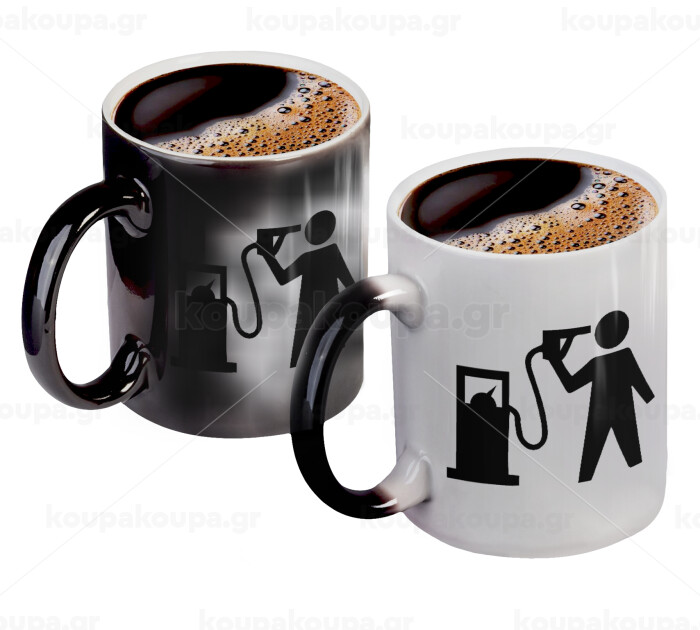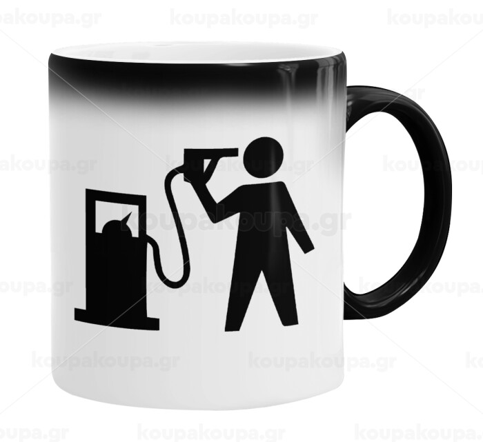 Fuel crisis, Color changing magic Mug, ceramic, 330ml when adding hot liquid inside, the black colour desappears (1 pcs)