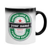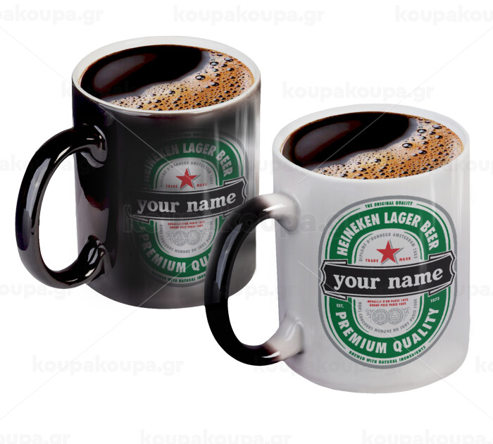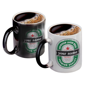 Heineken with name, Color changing magic Mug, ceramic, 330ml when adding hot liquid inside, the black colour desappears (1 pcs)